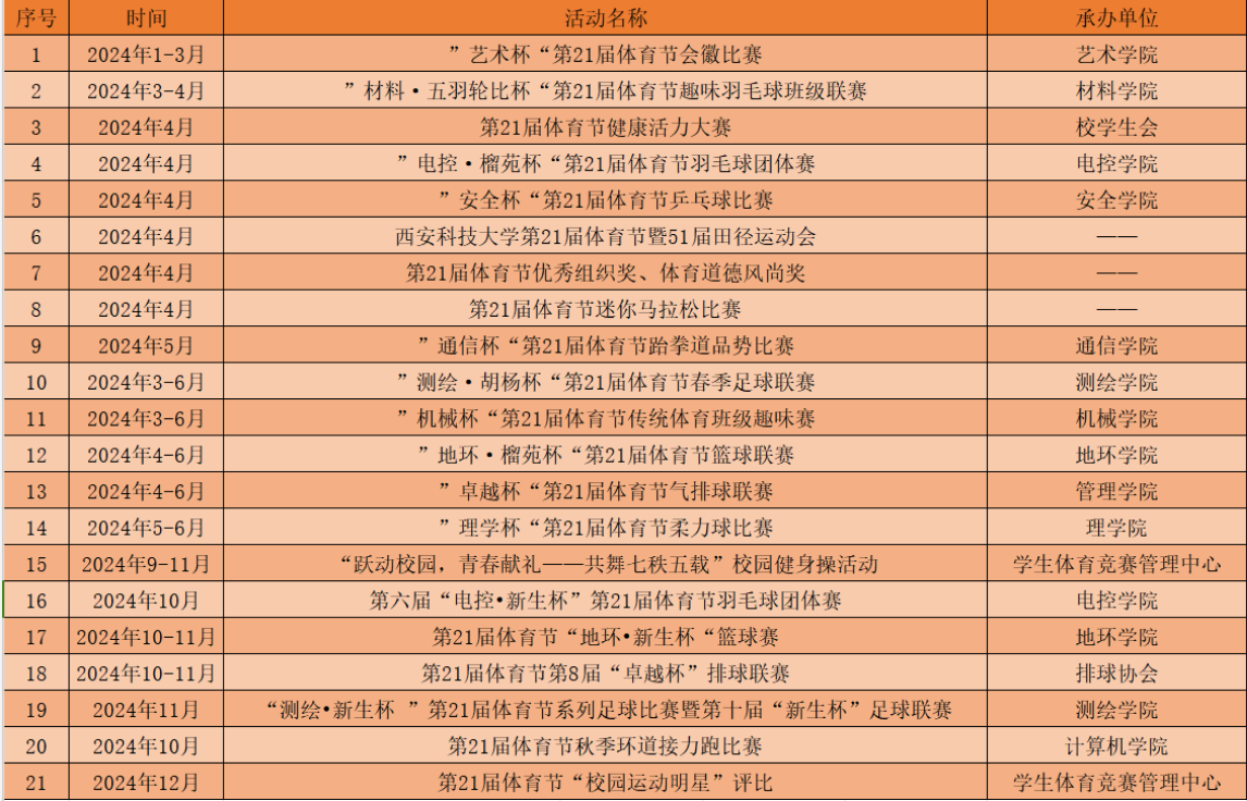 其中,啦啦操代表队在省级比赛中连续7年蝉联多项冠军,在2024年中国大学生街舞锦标赛中又夺得2项冠军;篮球队、乒乓球队在全省100多家高校代表队中脱颖而出,参加陕西省第十七届运动会,最终获得第五名;气排球队在全国大学生气排球联赛中获得女队第三名的历史最好成绩;田径队在陕西省第四十二届大学生田径运动会中获得男子跳高项目第二名的历史最好成绩,在四十三届大学生田径运动会中又获得女子5000米第二的历史新战绩;自行车代表队在2024年中国大学生自行车挑战赛中获得女子个人计时赛全国第三名;跆拳道代表队在第18届中国大学生跆拳道锦标赛总决赛中获得男子组87公斤级金牌。击剑队在第28 届全国大学生击剑锦标赛中参赛项目全部进入前八,女子足球队首次出征就获得2024年陕西省大学生足球联赛第四名的好成绩。近期,第27届CUBAL中国大学生篮球联赛陕西预赛正在如火如荼地进行,我们的篮球代表队正在全力以赴,迎战各校强队,让我们共同期待他们的表现和优异成绩吧!